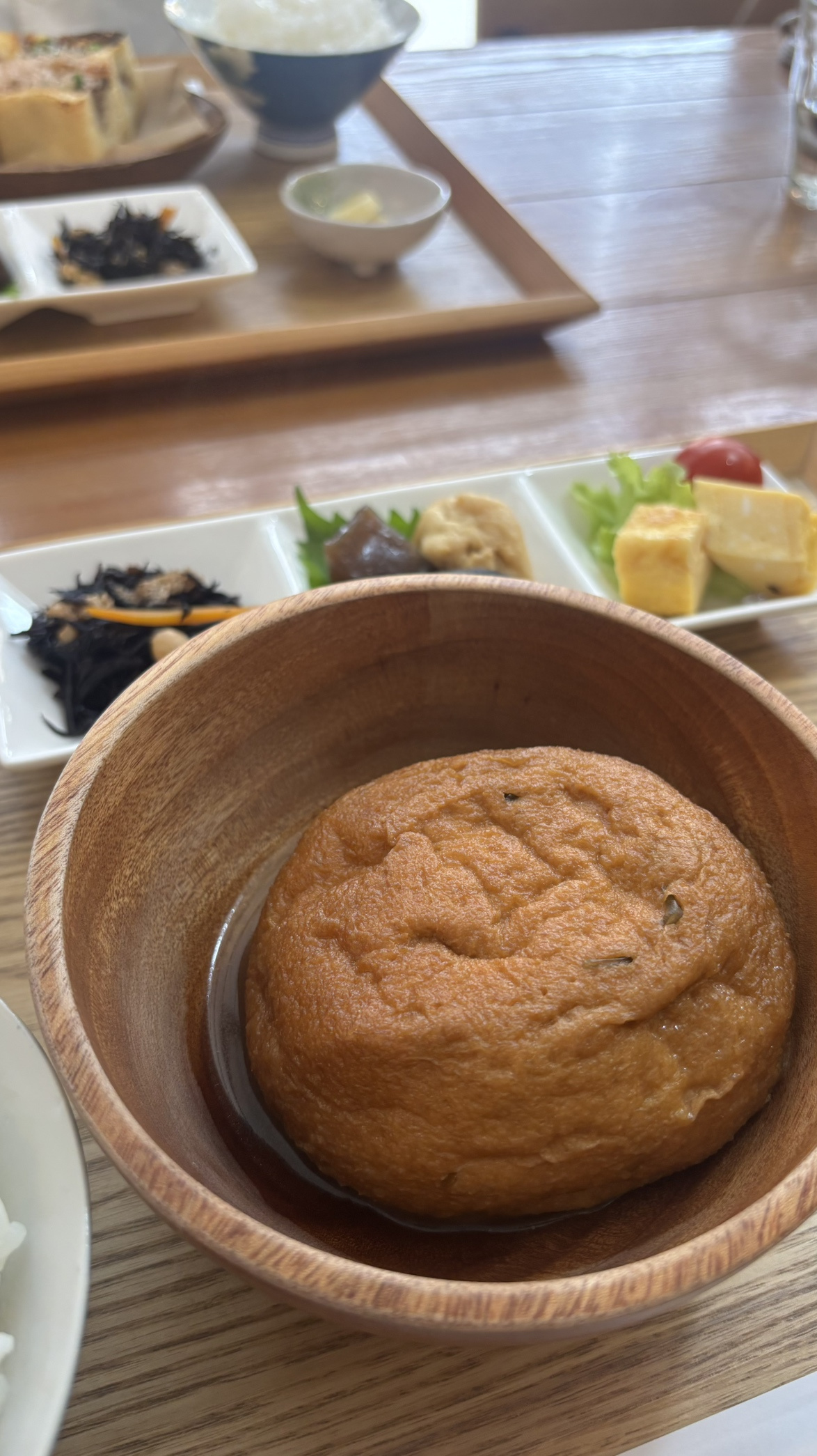 お昼ごはんはお豆腐屋さんでがんもの煮物の定食をいただきました。