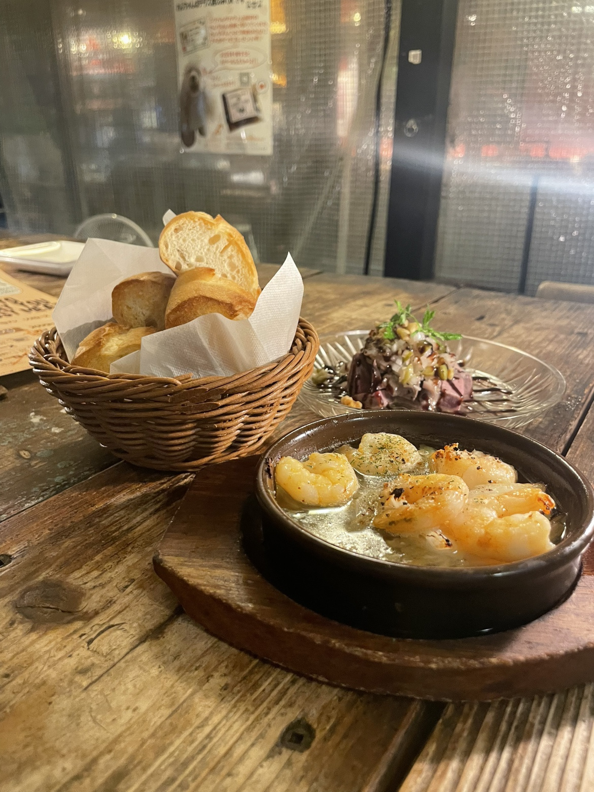 お肉はもちろん、エビのアヒージョが絶品・・・!