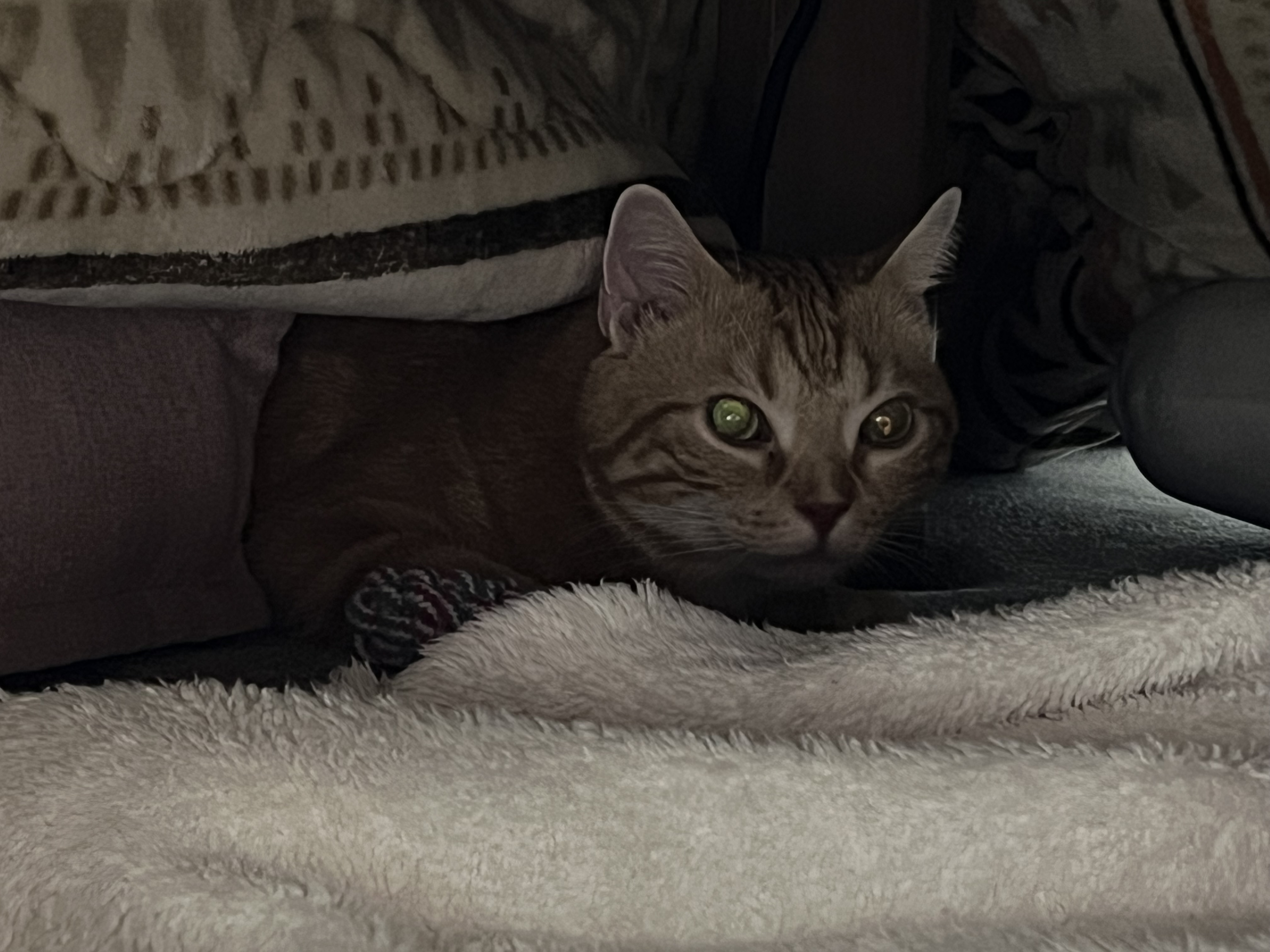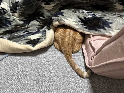 コタツの中に隠れても顔が緊張感ある顔でした。